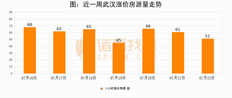 根据诸葛找房数据显示,武汉24小时涨价房源量为51套,较07月21日减少10套,环比下降16.4%。与此同时,涨价房源占比小幅回落,对于购房者来说是一个入市窗口期,购房者可抓住时机入市。
