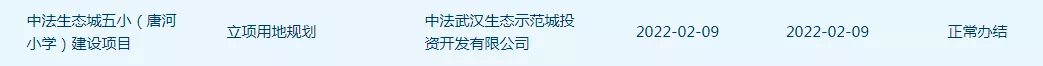 2月9日,中法生态城五小(唐河小学)立项用地规划获批。