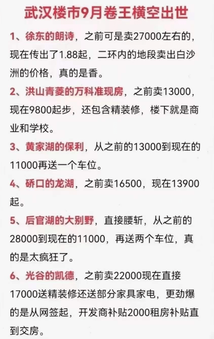 9月份,一张“武汉楼市9月卷王横空出世”的表格在朋友圈迅速发酵,也是这张表格,把武汉楼盘如何在价格上开卷,体现得酣畅淋漓。