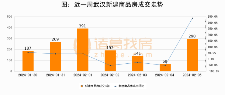 【武汉成交日报】02月05日新房成交298套;涨价房源41套