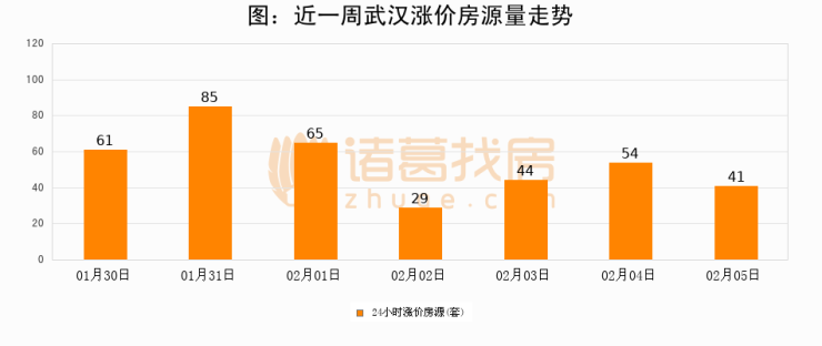 根据诸葛找房数据显示,武汉24小时涨价房源量为41套,较02月04日减少13套,环比下降24.1%。与此同时,涨价房源占比小幅回落,对于购房者来说是一个入市窗口期,购房者可抓住时机入市。