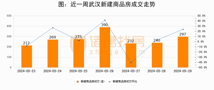【武汉成交日报】05月29日新房成交297套;涨价房源134套