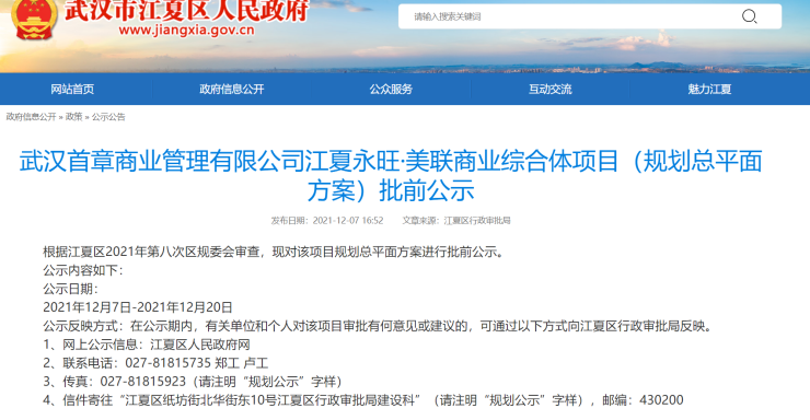 规模超经开!江夏永旺·美联商业综合体项目批前公示