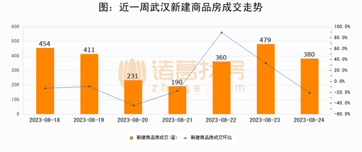 【武汉成交日报】08月24日新房成交380套;涨价房源181套