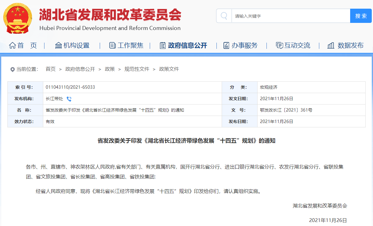 省发改委关于印发《湖北省长江经济带绿色发展“十四五”规划》的通知