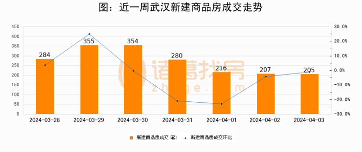 【武汉成交日报】04月03日新房成交205套;涨价房源112套
