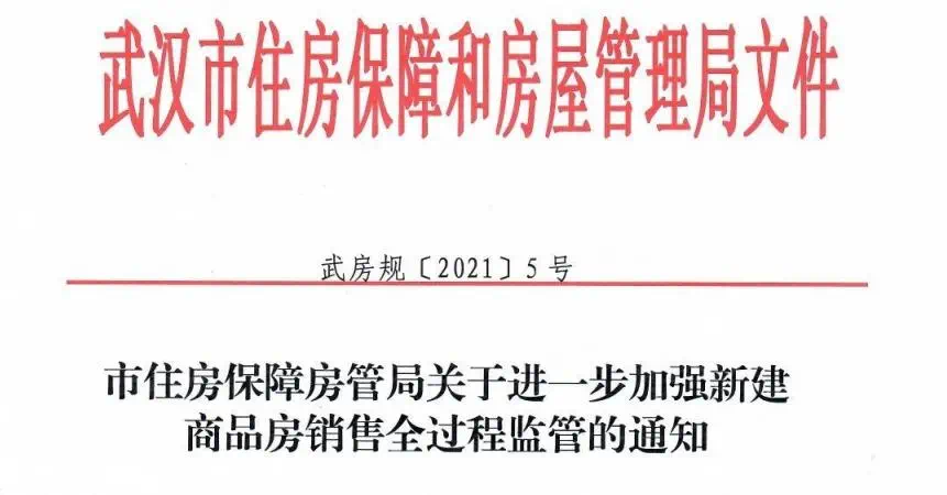 2021年4月25日,武汉市出台了《市住房保障房管局关于进一步加强新建商品房销售全过程监管的通知》。