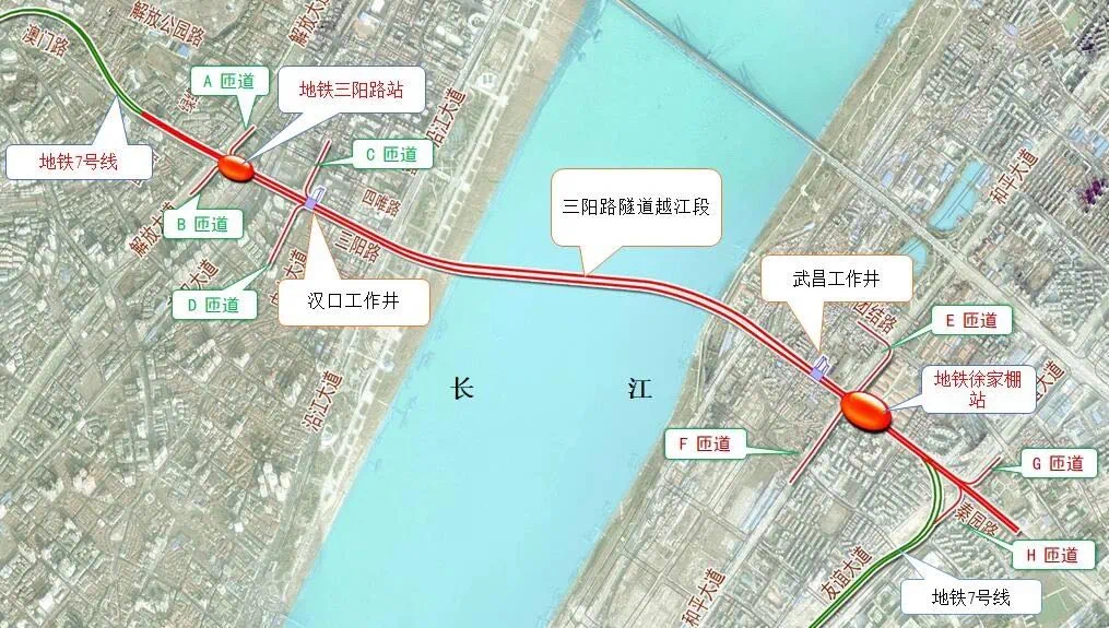 武汉三阳路长江隧道工程穿越长江,是连接汉口与武昌的复合交通纽带。隧道主线长4660米,设计行车时速60公里,双向6车道。