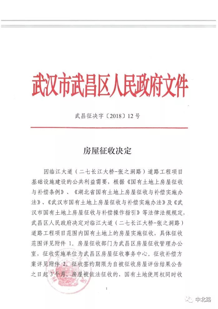 微信公众号中北路(作者姜华jianghua2046)获悉,武汉武昌临江大道(二七大桥——张之洞路)道路工程项目房屋征收决定及补偿方案。