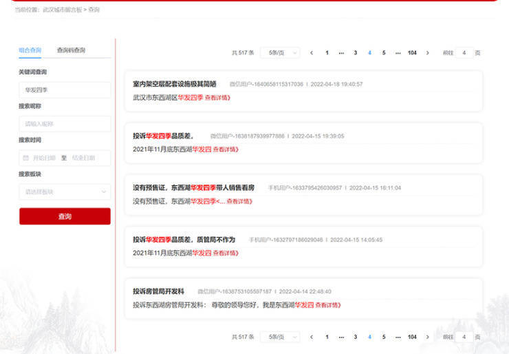 打开城市留言板搜索“华发四季”,与其相关的投诉多达数百条。通过整理相关资料可以发现,华发四季业主投诉和维权主要集中在两大问题:一是交房质量与宣传不符;二是项目降价幅度过大。