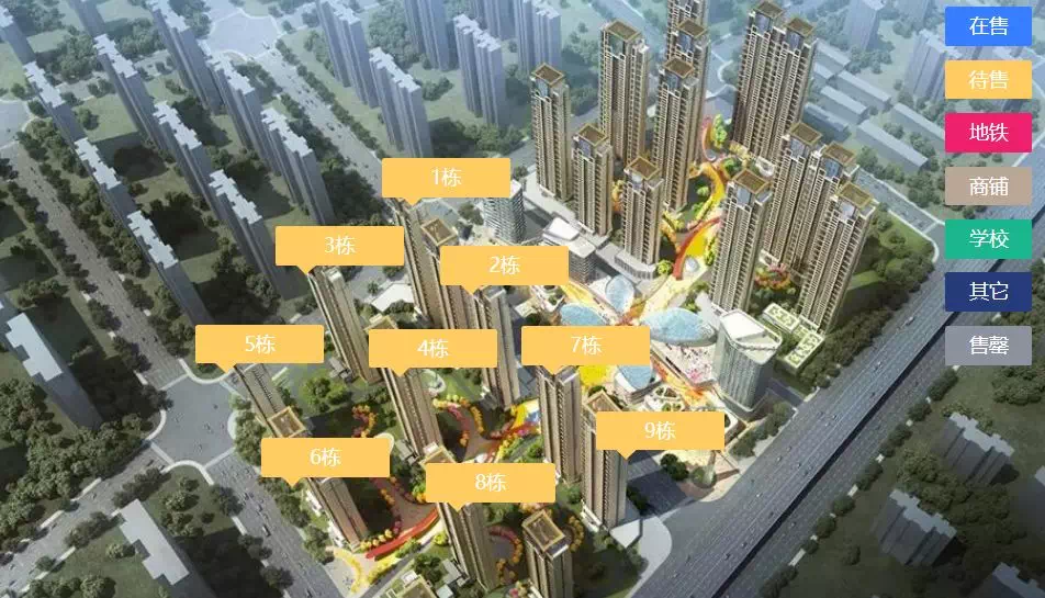 总规划13栋楼,包括1所幼儿园,1栋还建安置房,2栋商业,9栋住宅,层高分别有32\43\44\55层。
