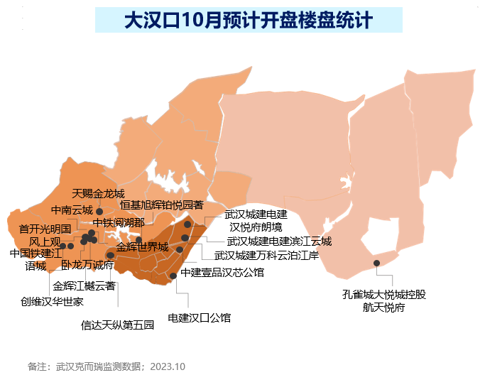 武汉2023年10月预计开盘项目发布,大汉口片区为供应的绝对主力