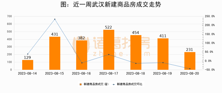 【武汉成交日报】08月20日新房成交231套;涨价房源232套