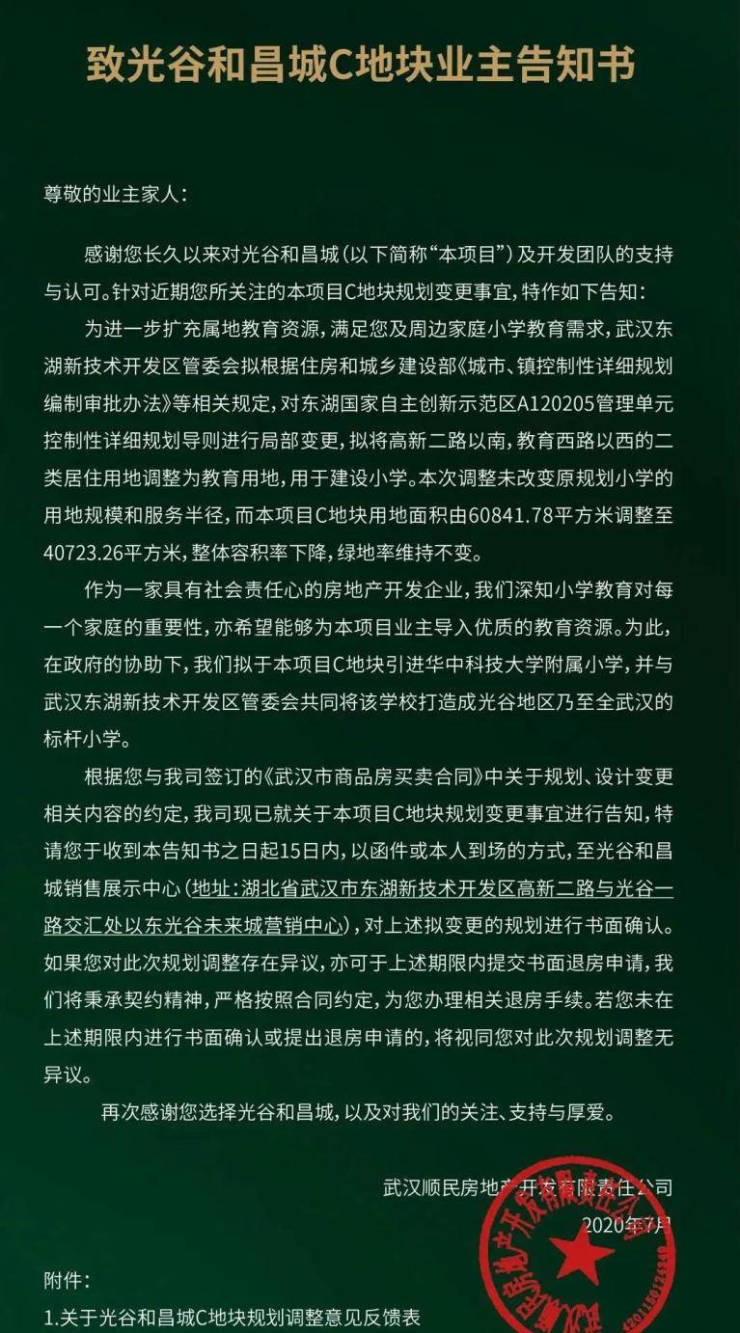 光谷未来城C区还在已开盘出售房源的情况下修改了规划。根据业主提供的资料,光谷未来城C地块原来规划有“青年乐园”、“中央活力公园”等绿地以及部分道路。