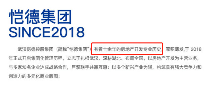 根据企查查官网信息显示,武汉恺德成立于2014年,但其官方网站却介绍自己“深耕武汉地产十余年”,这种说法从何而来?