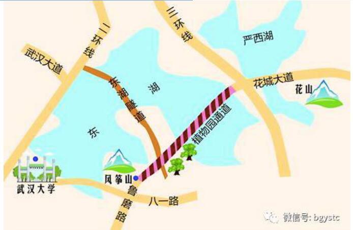 植物园通道与东湖隧道呈十字交叉,