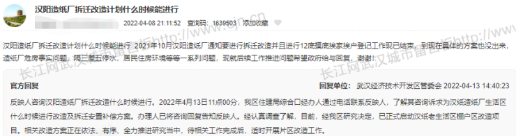 网友:汉阳造纸厂拆迁改造计划什么时候能进行?