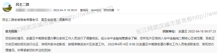 网友:民主二路安装宿舍房屋老旧,是否会改造,或者拆迁?