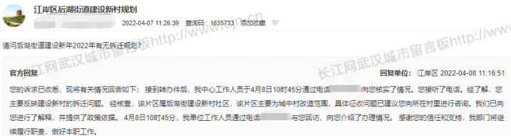 网友:请问后湖街道建设新年2022年有无拆迁规划?