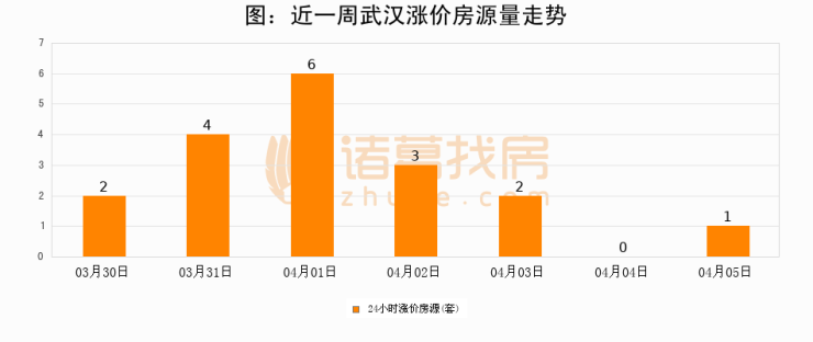 根据诸葛找房数据显示,武汉24小时涨价房源量为1套,较04月04日增加1套,环比上涨0%。与此同时,涨价房源占比小幅扩大,业主信心有所提升。