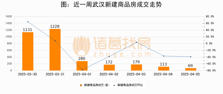 【武汉成交日报】04月05日新房成交69套;涨价房源1套