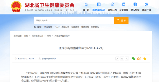 3月29日消息,搜狐焦点获悉,汉阳区将新增一家三级妇女儿童专科医院。近日,湖北省卫生健康委员会网站发布医疗机构设置审批公示,公示湖北省妇幼保健院申请设置“湖北省妇幼保健院汉阳院区”的相关情况,公示期为3月27日—4月2日。