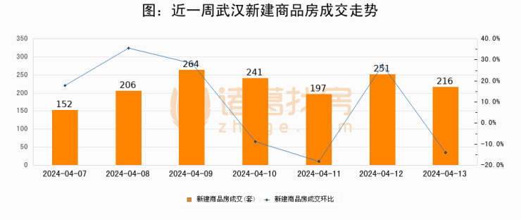 【武汉成交日报】04月13日新房成交216套;涨价房源105套