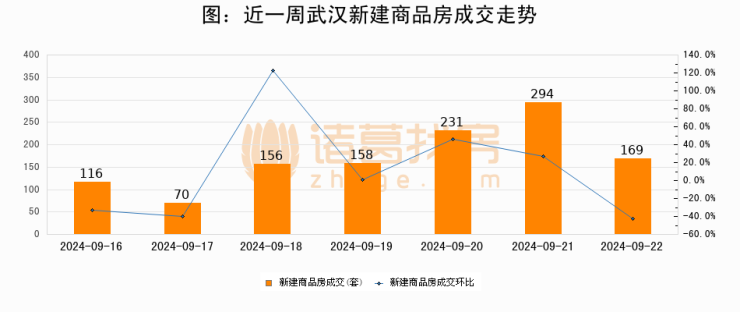 【武汉成交日报】09月22日新房成交169套;涨价房源15套