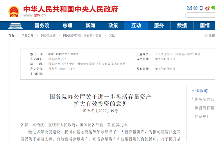 5月26日消息,搜狐焦点获悉, 国务院办公厅发布《关于进一步盘活存量资产扩大有效投资的意见》。意见包含六大方面二十四条意见。