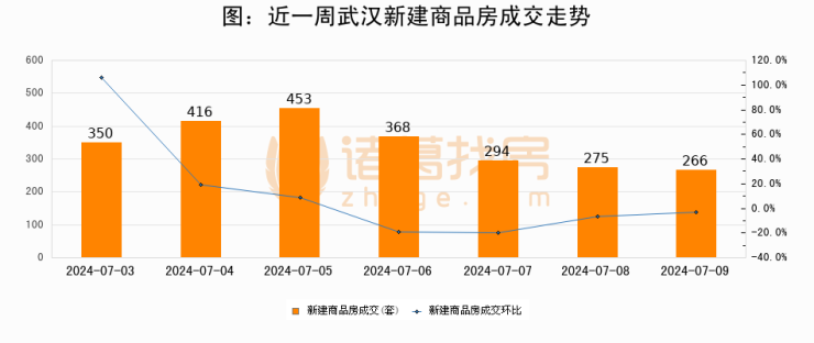 【武汉成交日报】07月09日新房成交266套;涨价房源51套