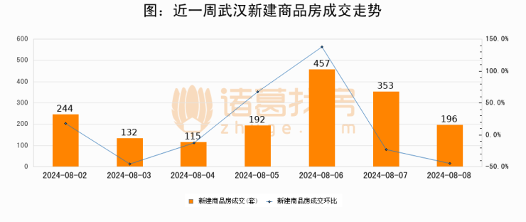 【武汉成交日报】08月08日新房成交196套;涨价房源56套