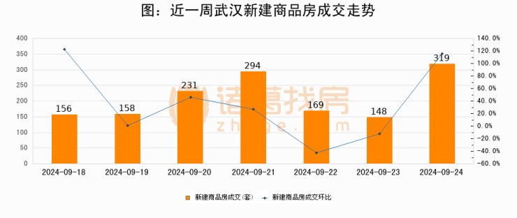 【武汉成交日报】09月24日新房成交319套;涨价房源14套