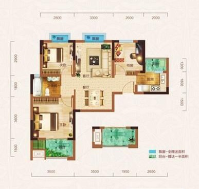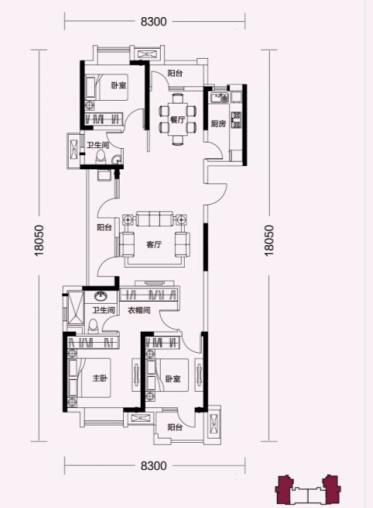 该户型延伸出来的主卧犹如凸出来的“刀柄”,市场称“刀柄户型”。表面看,主卧带有3.3米阳台,保障了其私密性,但客厅、餐厅采光较弱,而进门处餐厅的位置,略显尴尬,要摆在2.1米的过道中,切忌不能买大餐桌。此外,卫生间门正对房屋大门,空气对流下,居者还能愉快吃饭?