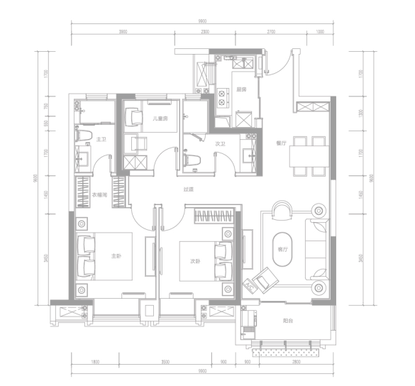 方正户型,避免了不合理的长宽比例,从体验来说,舒适度更高。同时,方正户型没有狭长的走道,空间使用率更高;