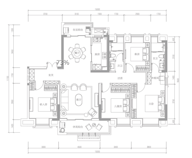 入口玄关,轻松收纳。餐客厅一体,容纳三代人同堂时光;