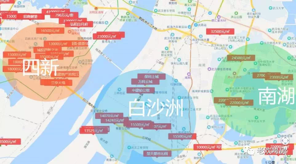 目前,白沙洲三环内新房较高开盘均价达到了16600元/平(带装修),三环外的青菱、黄家湖板块新房均价也在13500元/平左右。就这样,白沙洲片区的房价在三年内完成了三级跳,“价格洼地”正在被迅速填平。
