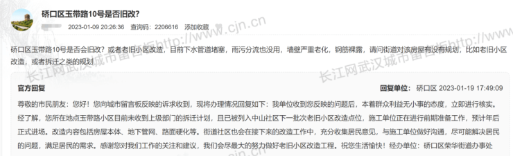 问:硚口区玉带路10号是否会旧改?或者老旧小区改造?