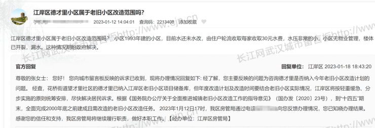 问:江岸区德才里小区属于老旧小区改造范围吗?
