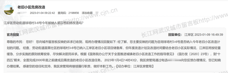 问:江岸区劳动街道球场村3-6号今年被纳入武汉市旧房改造吗?