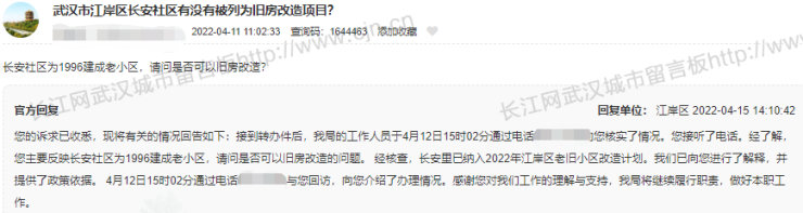 网友:江岸区长安社区为1996建成老小区,请问是否可以旧房改造?