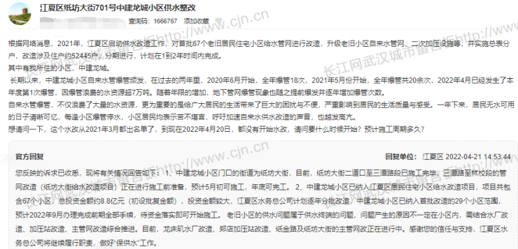 网友:江夏区纸坊大街701号中建龙城小区什么时候开始供水改造?