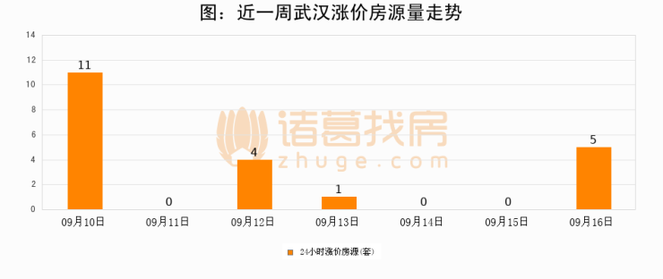 根据诸葛找房数据显示,武汉24小时涨价房源量为5套,较09月15日增加5套,环比上涨0%。与此同时,涨价房源占比小幅扩大,业主信心有所提升。