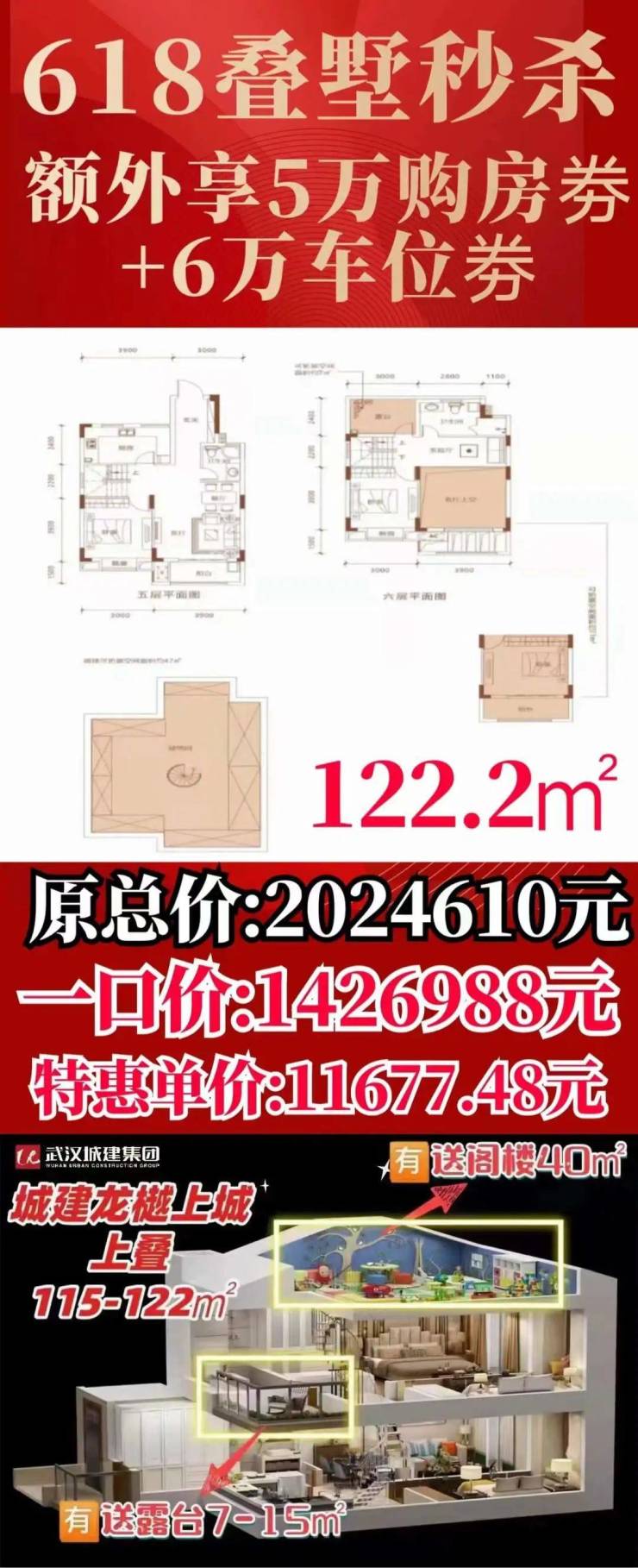 项目位于临空新城·地铁2号线宋家岗A出口旁,毛坯交付,别墅均价17383元/平。现在有建面约122平的房源总价优惠近60万元,还送5万元购房券和6万元车位券。