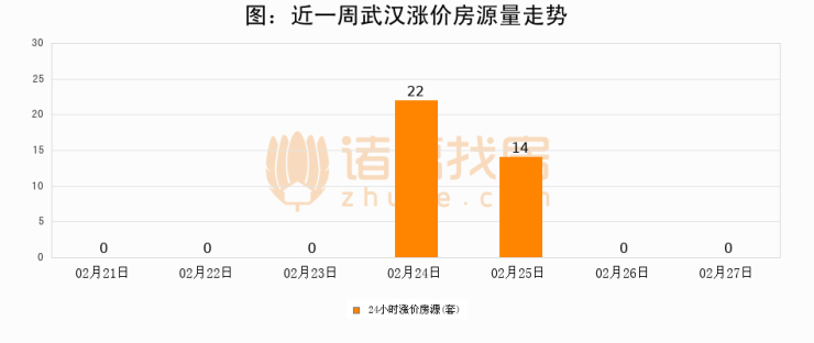 根据诸葛找房数据显示,武汉24小时涨价房源量为0套,较02月26日持平。
