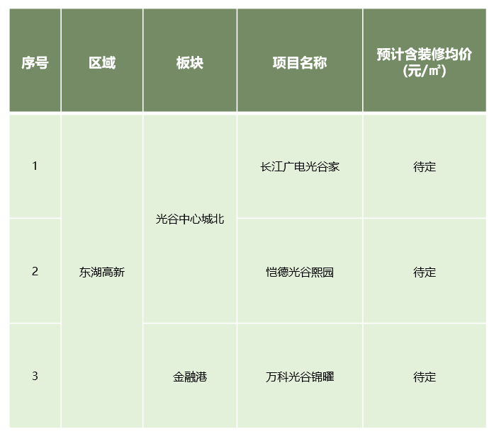 大光谷 12月预计供应3个项目,均为老盘加推,总供应750套左右。