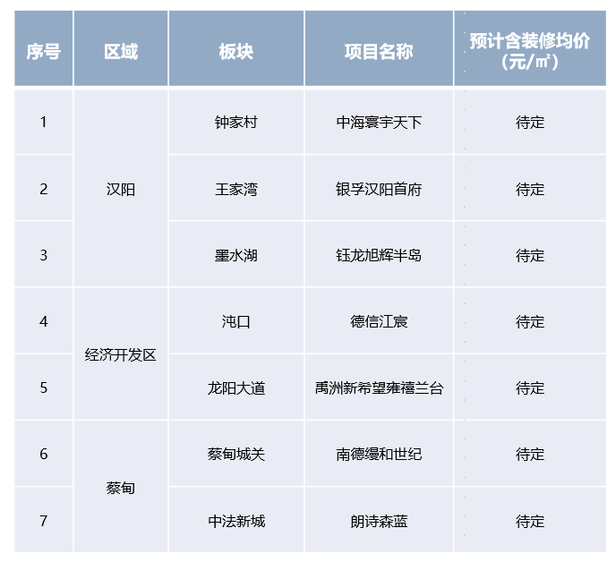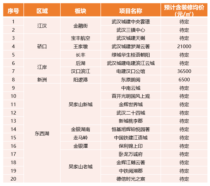 武汉12月预计开盘项目发布,新盘聚集于城市中心