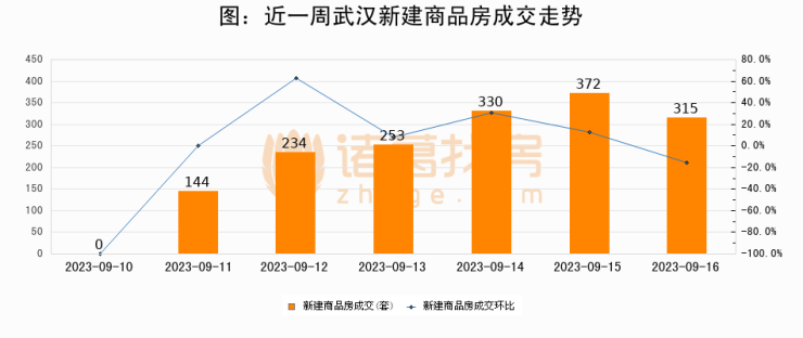 【武汉成交日报】09月16日新房成交315套;涨价房源160套