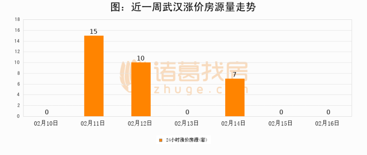 根据诸葛找房数据显示,武汉24小时涨价房源量为0套,较02月15日持平。