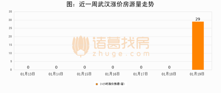 根据诸葛找房数据显示,武汉24小时涨价房源量为29套,较01月18日增加29套,环比上涨0%。与此同时,涨价房源占比小幅扩大,业主信心有所提升。