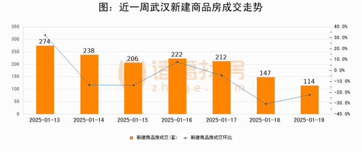 【武汉成交日报】01月19日新房成交114套;涨价房源29套